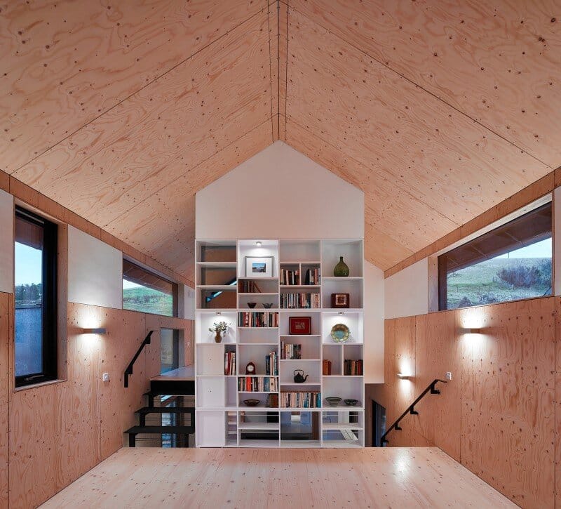 The original walls were consolidated and repaired using stone from the site, and re-pointed with lime mortar. Any new openings in the stonework were edged in galvanised steel and the new timber structure clad in black stained timber as subservient to the original walls. Internally the walls are clad in construction grade spruce plywood, with a more pristine plastered core. Floors are pine boards and polished concrete. Photographs: Andrew Lee