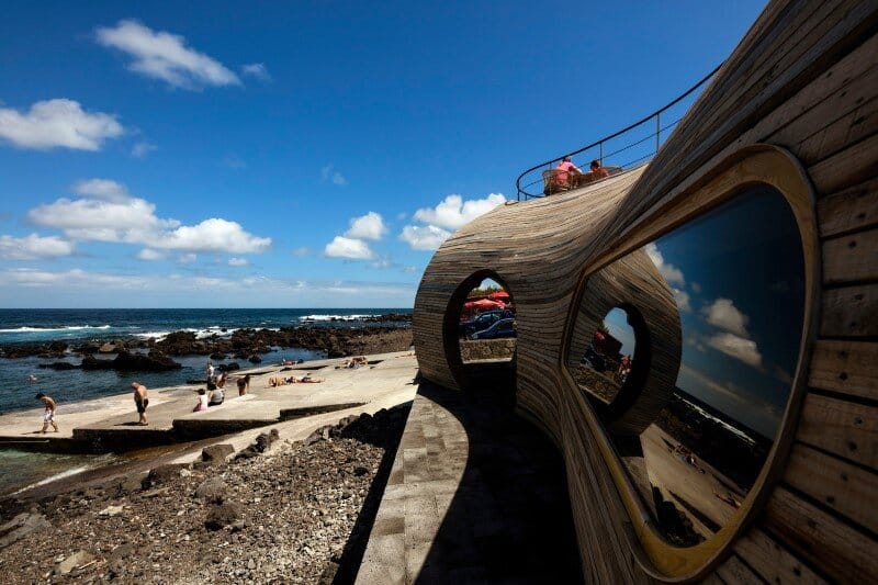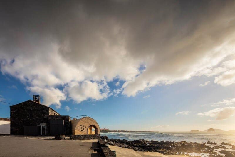 Several features of that environment are present in the architecture of the building, including the outline of the island, rocks, whales and wine casks. The new volume acts like a giant sculpture, tailored for its location.