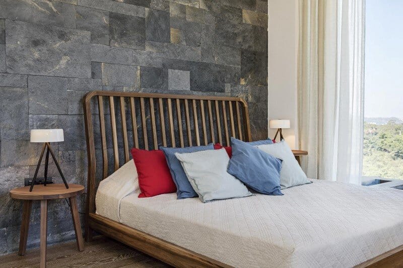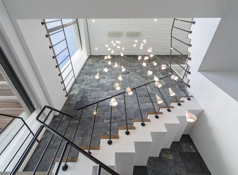 Natural materials like wood, iron and stone were applied and local tradition was implemented through the use of slate on the walls, textured plaster walls and lath ornaments. A floating panel covers the plain ceiling that was in place before adding an element that evokes traditional wooden structured ceilings that are present in historic buildings in the surrounding area. The goal was to gather all these materials and approaches together yet still fulfil the contemporary needs of a modern family.