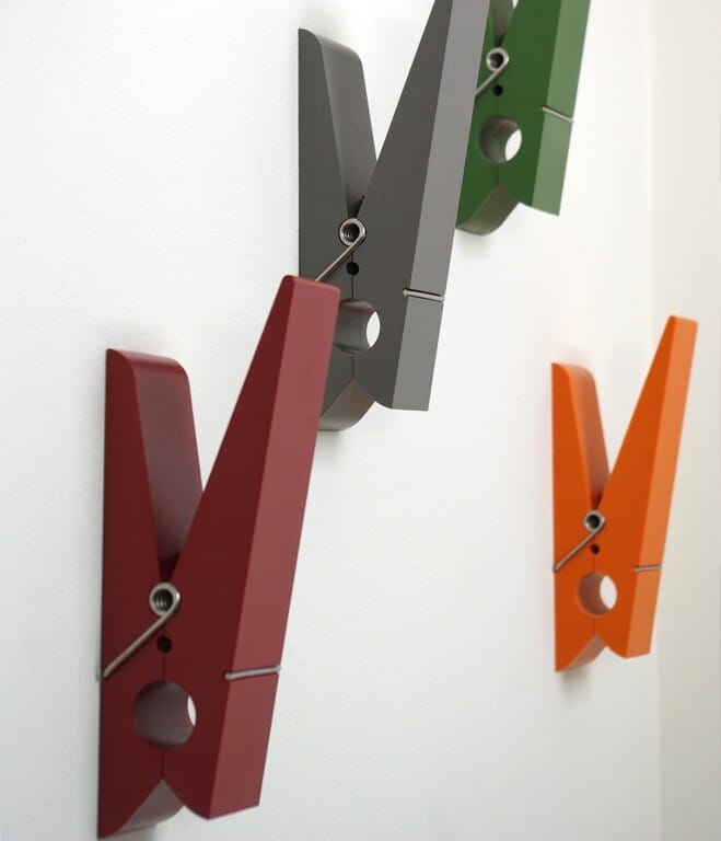 Pince Alors ! is a nice project made by the French company Swabdesign, whose designers had the idea to oversize hooks for hanging clothes, giving them a function of a hanger.