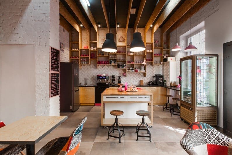 To meet the dreams of the owners that were captured during long hours of conversations, the architects decided to substitute the traditional café counter with a kitchen island. A place that would be the center of the café’s life. This solution helped blur the line between the staff and the customers, introduce a homey feel, but also together with the modular tables, created a space easy to rearrange for different events.