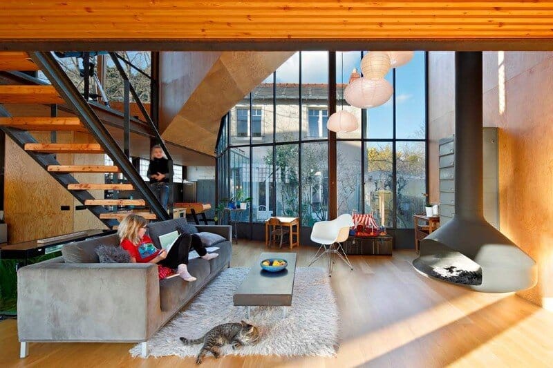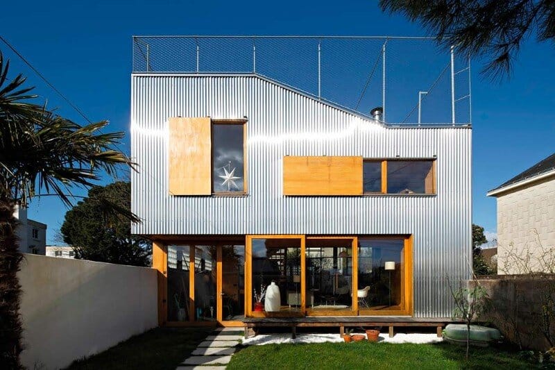 Description by Mabire Reich: Extending a house means reducing the exterior space of a plot. The theme of the project that we developed for the “landscape house” is the restitution of an exterior space. The site of the project is located in Nantes (France), in an area established on a ridge of the Armorican Massif. The 300m² plot hosts at its bottom a small house as a testimony to the past worker of the neighborhood.