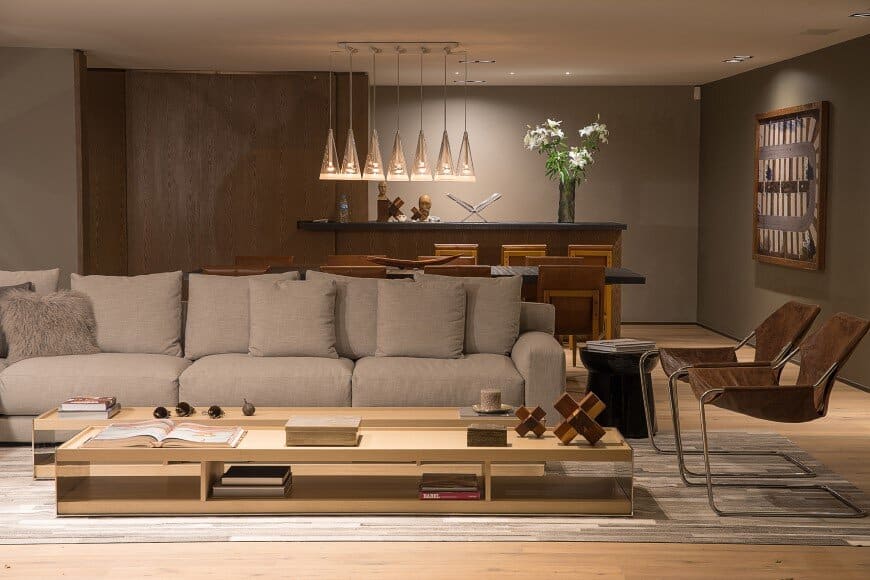 Modernizing the space, the project team created moments of discovery throughout the home, and took advantage of the home’s views towards the neighboring woods. Floor to ceiling glass draws in natural light and frames the exterior view without compromising the comfort and intimacy of the inhabitants. The home’s new hallways lead to multifunctional spaces achieved through movable screen walls, hidden doors, and wide open spaces with operable bay windows.