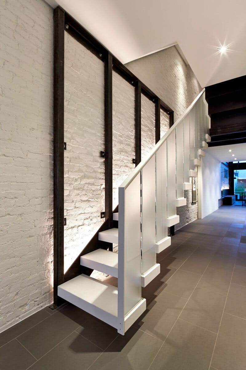 The Owners were also looking for a place of calm and relaxation, with the flexibility to transform into an entertainment space for their many gatherings. The need to open up the traditional walled-in rowhouse became apparent. The rear second floor was removed to allow for a double-height wall of windows and sliding doors which connects the 2-story living space to the new rear garden. As a gesture to the Owners’ love of art, steel was used as both a structural and decorative element in the house and garden. “Pops” of color sprinkled in to add some spice to the composition. Visit KUBE Architecture.