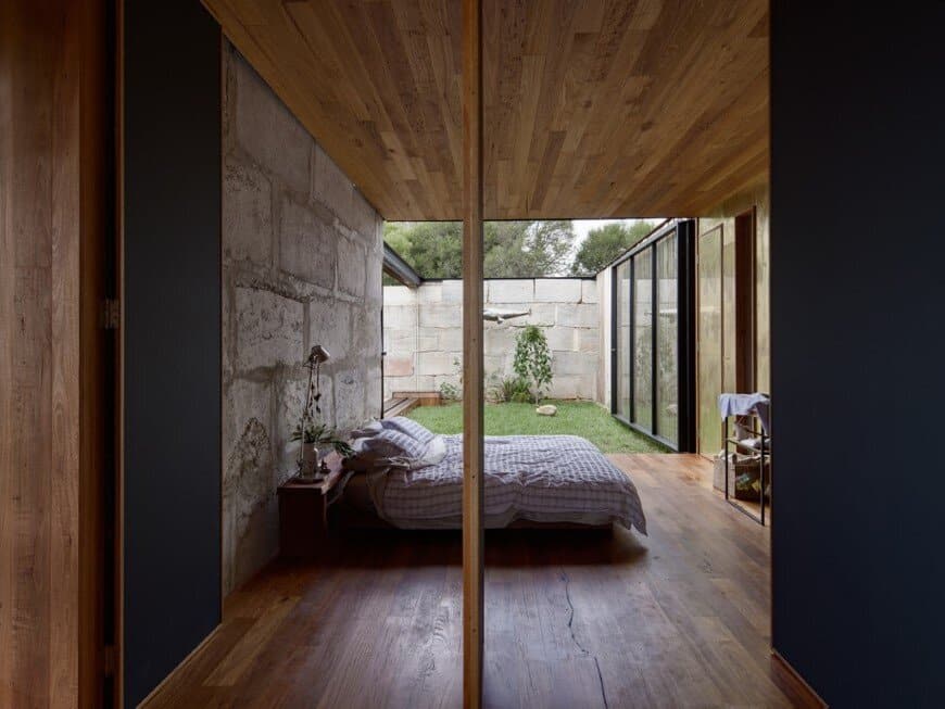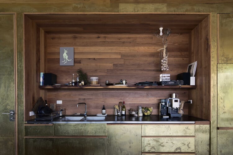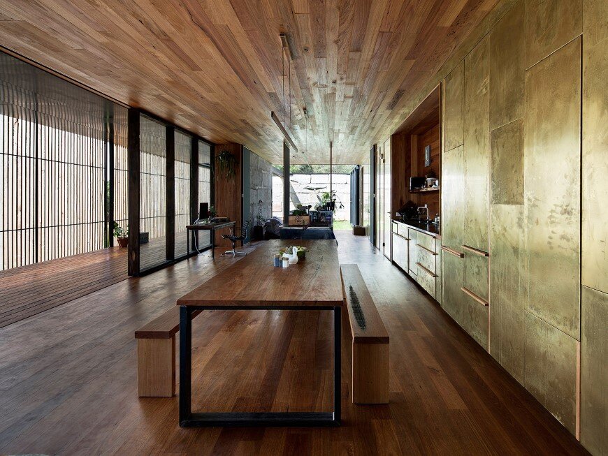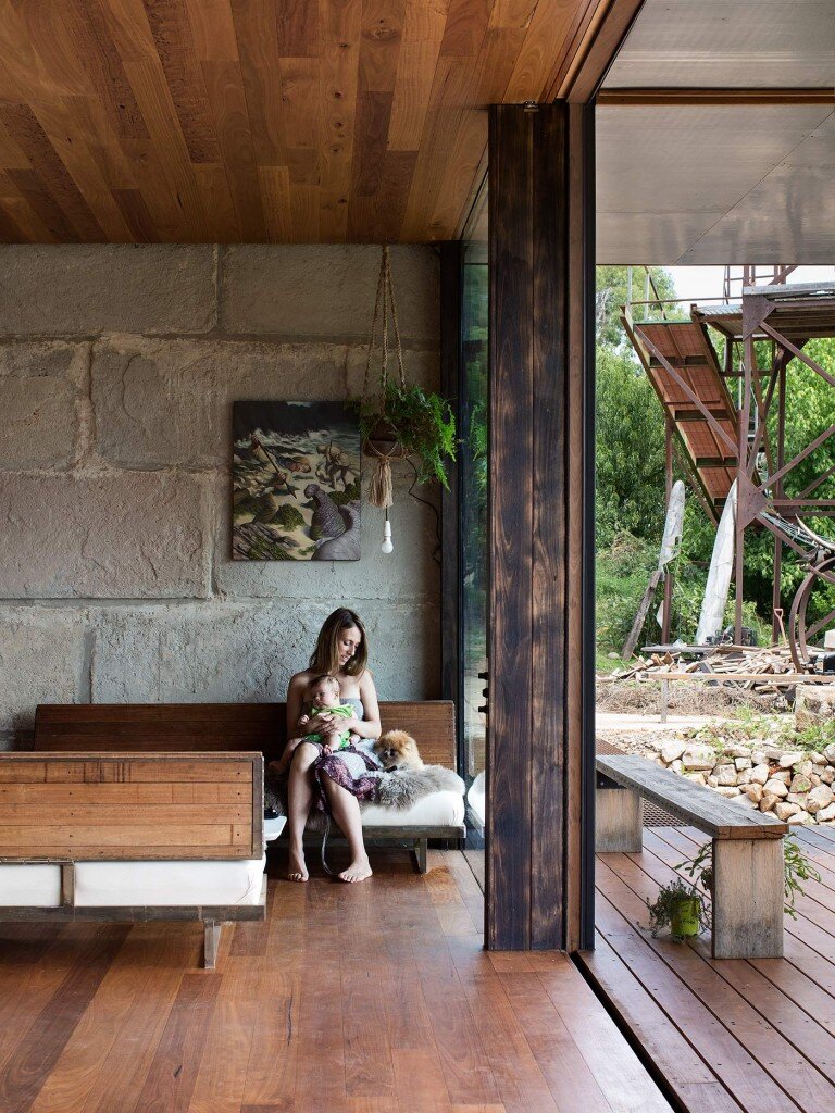 The architect’s description: Befitting a regionally based sculptor, Sawmill House is a hand crafted upgrade from his existing rather rustic bohemian abode.