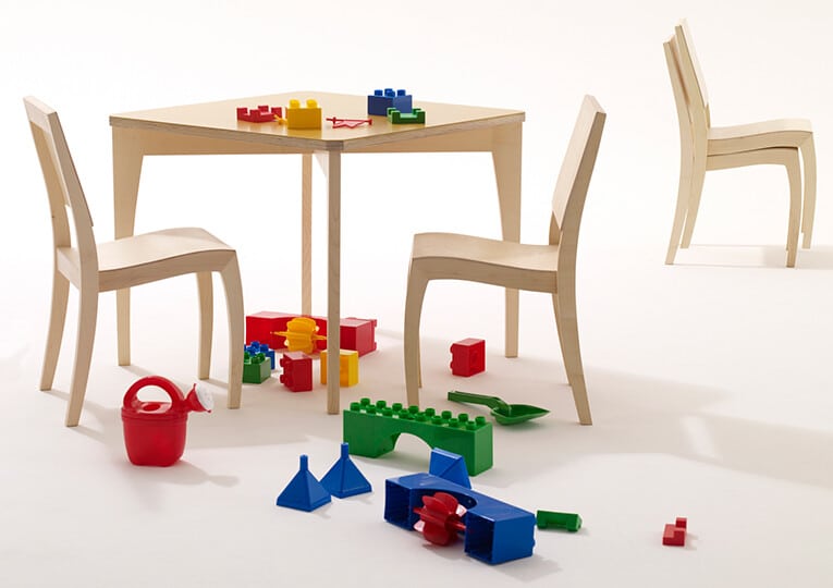 The chairs are made from solid wood and have a graceful form, respecting the principles of ergonomics. Having a beautiful design, these help the child to keep a good and comfortable posture. Made of natural and solid materials with a fine joinery, this furniture is long lasting.