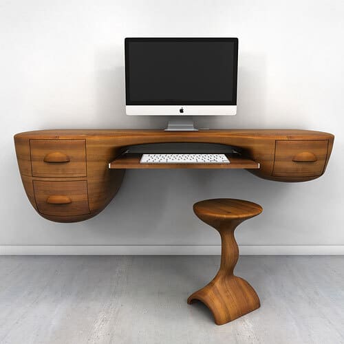 This desk made by Victor Klassen has a distinctiveness elegance and it is named “Swerve Desk”. The soft and smooth curves show imagination and an excellent woodworking technique, consolidated in 25 years of activity and which has brought to the artist a wide recognition. The texture and wood grain are exquisite, the drawers and pulls fitted fluidly and seamlessly. Inspired by the roundness of the natural and organic forms, and with the intent to create the illusion of movement, the curves of this piece flow in a sensual and elegant rhythm.
