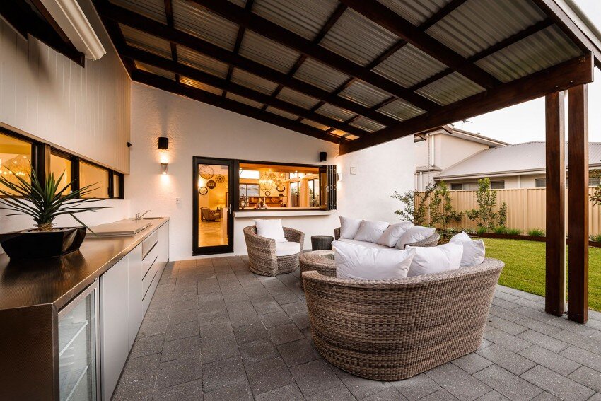 If you’re building on a large open block or just value your privacy, you’ll love the alfresco that’s enclosed on three sides to provide protection from the elements. What’s more, there’s a big bi-fold window that can be opened to create a servery to and from the kitchen.