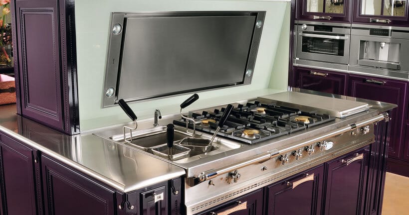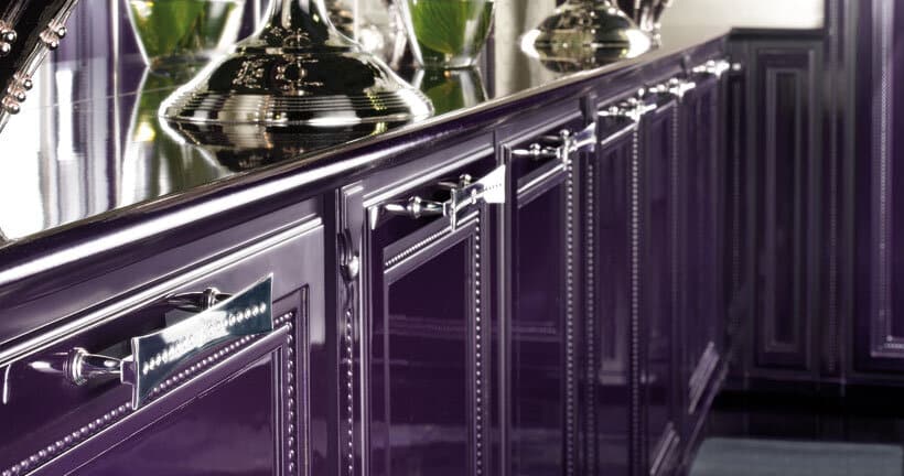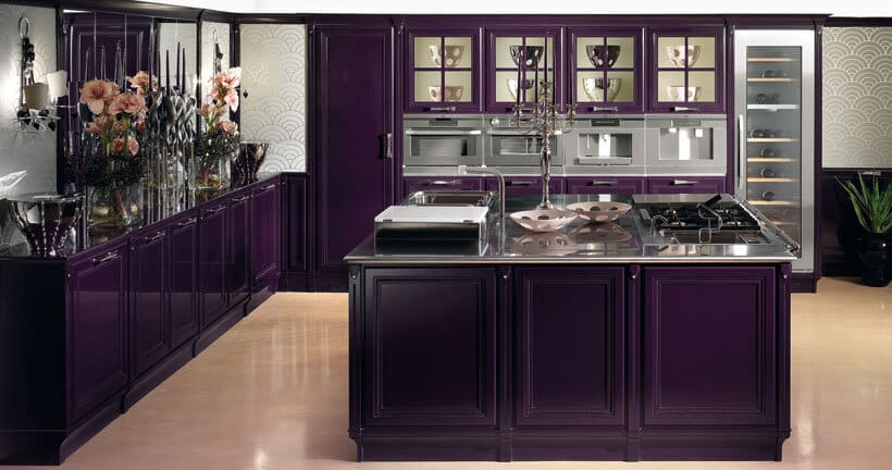 The purple kitchen is designed to catch, amaze and reflect the personality of the one who chooses it. And as everything is in the details, the status of luxury kitchen is given by the exceptional quality of the materials and the way how these are made. The main materials are lacquered wood and stainless steel.