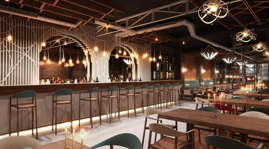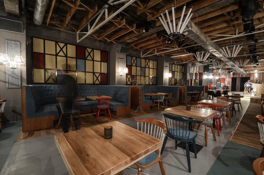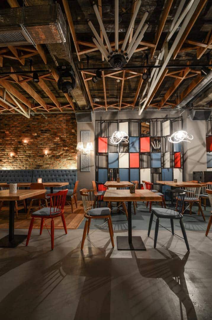 Description by Yellow Office: Located on a main Boulevard in Constanta city, this place feature a mix between relaxed restaurant, event hall and club. The design brings in light typical American elements, strong related with the space geometry (long and narrow). Visit Yellow Office