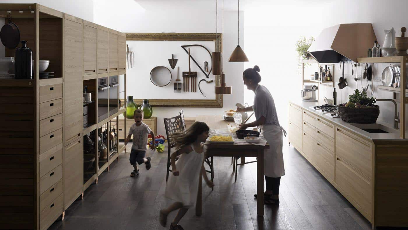 Such a view led the Italian designer Gabriele Centazzo to set the bases of the Valcucine project, in order to achieve kitchens in the traditional style by combining an approach and a modern geometry with decors of old times. Thus, the SineTempore kitchen is designed to express traditional values by recovering old handicraft techniques.