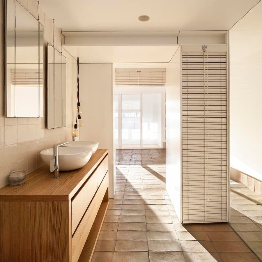 Between the Valencian farmlands, there’s a village whose landscape is dominated by orange trees. An ancient brick factory recalls the splendours of a past time. Near the city centre, and surrounded by buildings of the 20th century, there’s an empty dwelling that became Vernacular Penthouse. You can hear the blinds opening to let you see the tiled roofs of the neighbourhood, while the light has the leading role, filling the whole house. Under your feet, a carpet made of clay invites you to walk barefoot.
