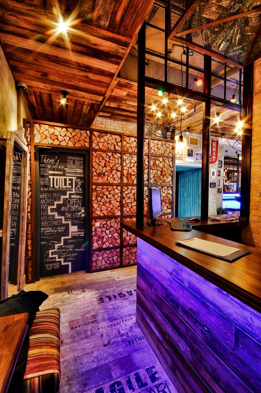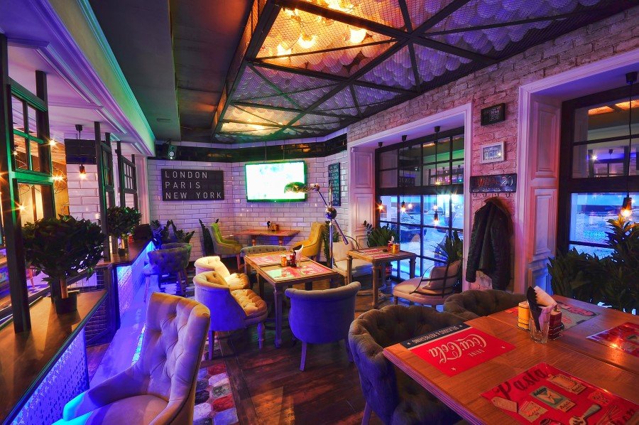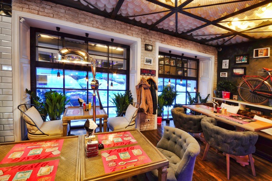 It is located in the premises previously existing youth cafe with modern design, which greatly complicates the problem, because the institution was known in the city and got used to it in a specific format. The challenge was to radically change the existing design and completely remove the last trace.