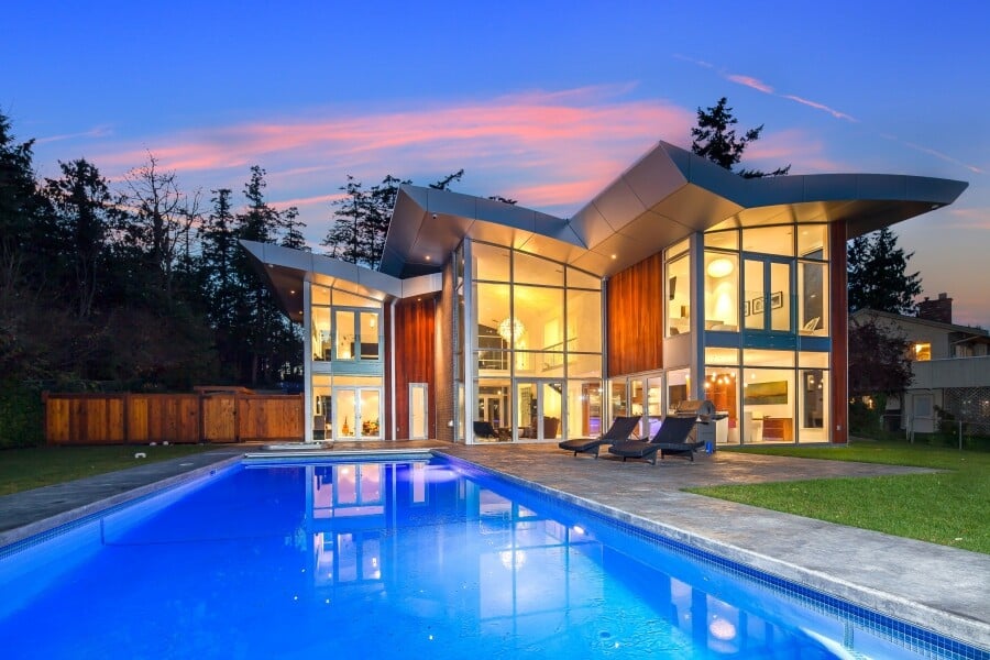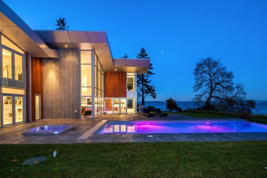 Exclusive gated waterfront house elegantly captures the Haro Straight (Canada) from this remarkable modern architectural design from Victoria-based 519 design +, Chris Foyd and Peter Johannknecht.