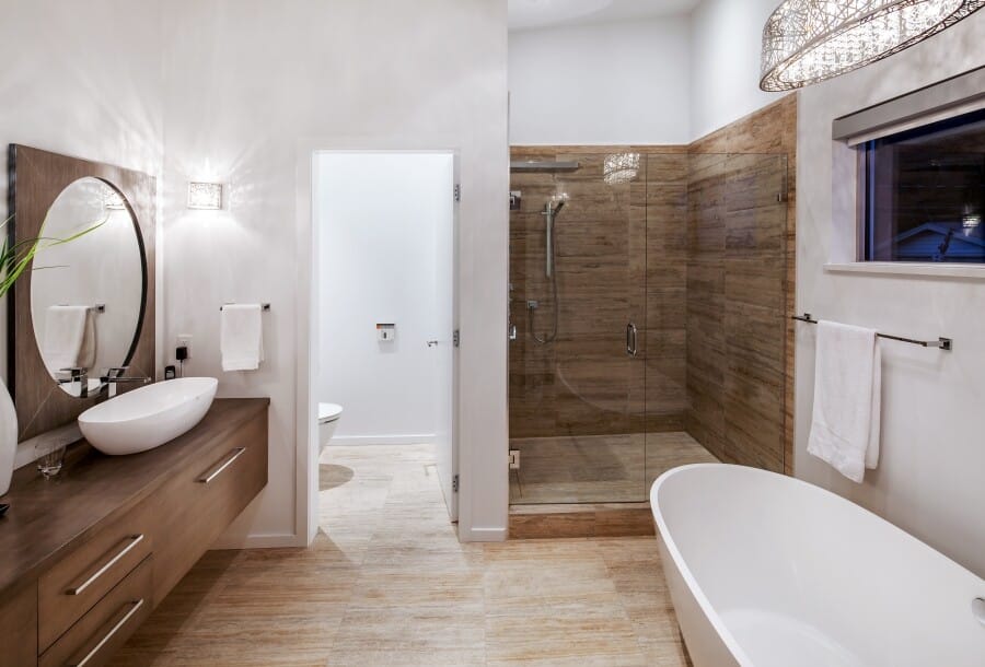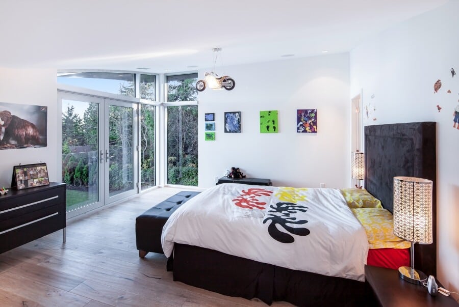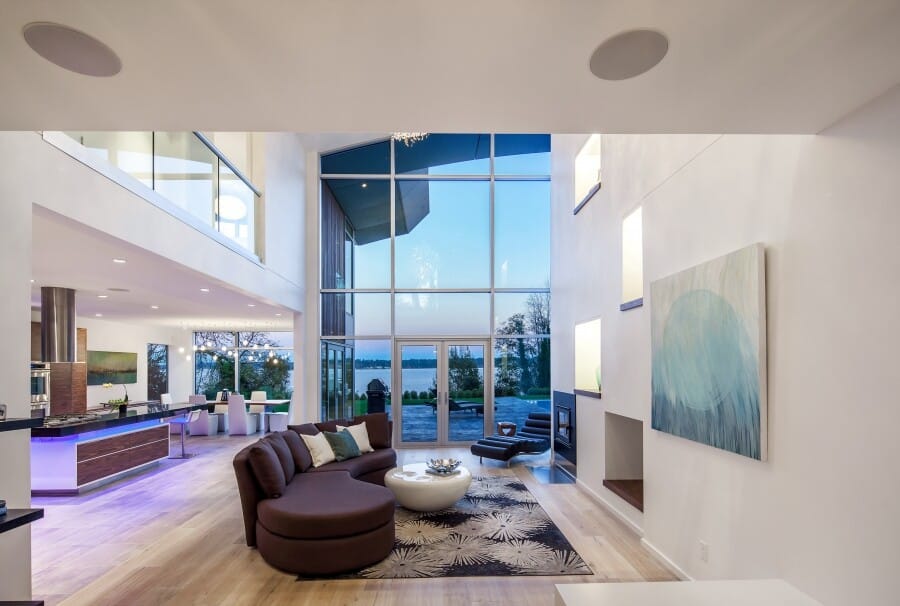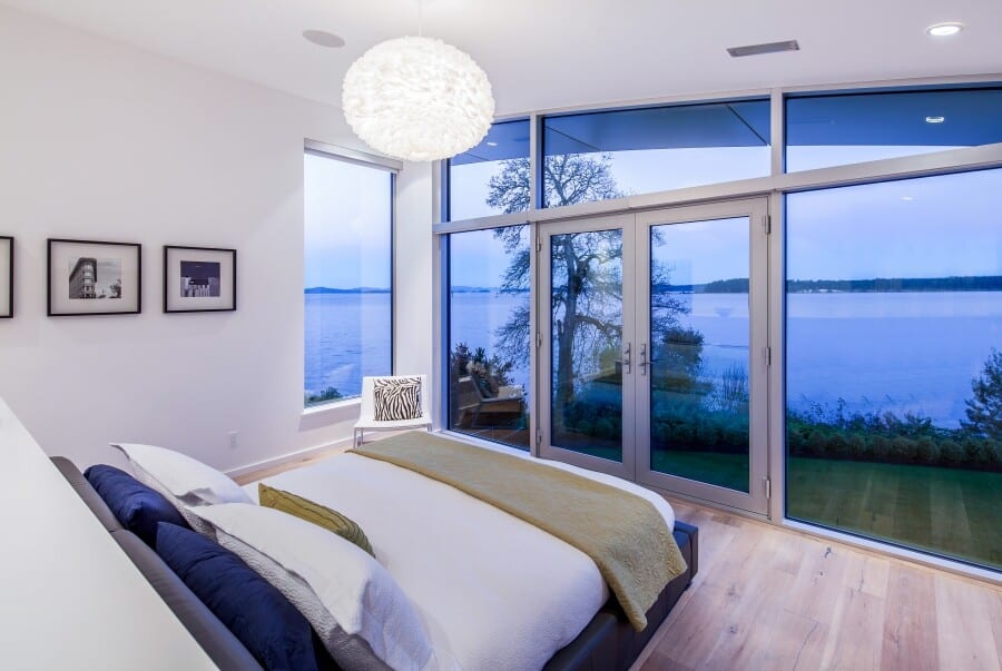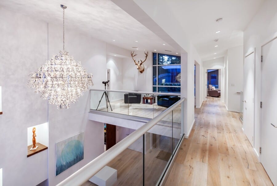 This fresh design is amplified by the natural light that cascades into the home from floor to ceiling windows allowing for stunning views throughout. Glass is used throughout the home to maintain a bright and open appeal and the use of a variety of natural wood materials inspire this stunning contemporary West Coast scheme.