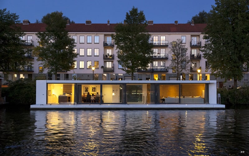 Description by + 31Architects: Living on the river Amstel in Amsterdam is an experience within itself. At this special location the cream of the crop of houseboat design is situated close to each other. Again + 31Architects ensured that the dream house of their clients became reality with this new watervilla. The residents enjoy every day “a feeling of being on holiday forever”.