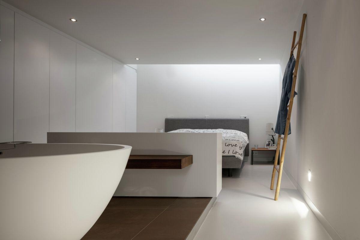Descending a staircase with floating steps you can enter the basement where the bedrooms and bathrooms are located. The staircase is placed inside a big void. At the other side a large window is placed directly next to the open void to ensure an explosion of light deep into the basement.