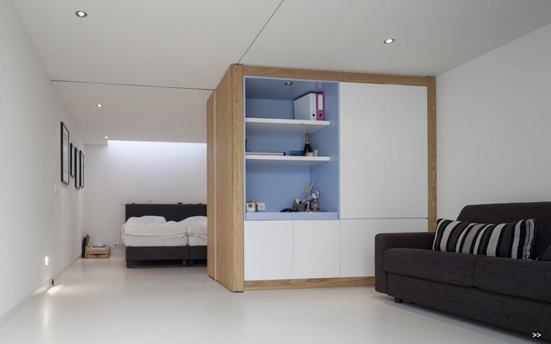 The film frame-like glass façade offers great veins on the water but occasionally also give a glimpse into the life of the residents. For the boats that are passing it looks as if a movie is played like a small intimate reality show.