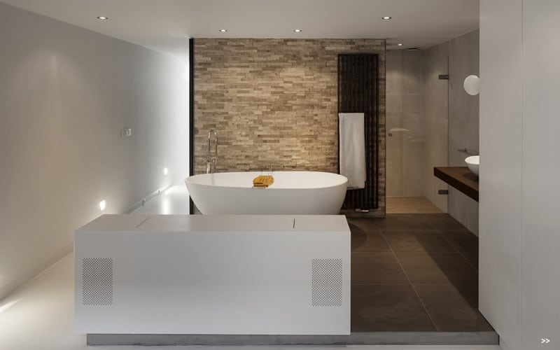 For this project many smart details were made. For instance at the waterfront there are three large sun screens that are fully integrated into the edge of the flat roof. With a push on the button the sun screens will slide automatically outside for a cooling effect.