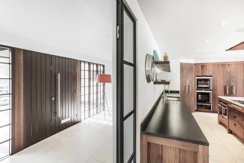 The house, built in the 1930’s required a fresh approach to unlock its potential and provide a modern family home. Key to the works was the change in location of the principle access and the remodelling of the entrance. This opened up a more logic sequence of spaces from the loggia, entrance hall, thorough to the kitchen; dining & open plan living area.