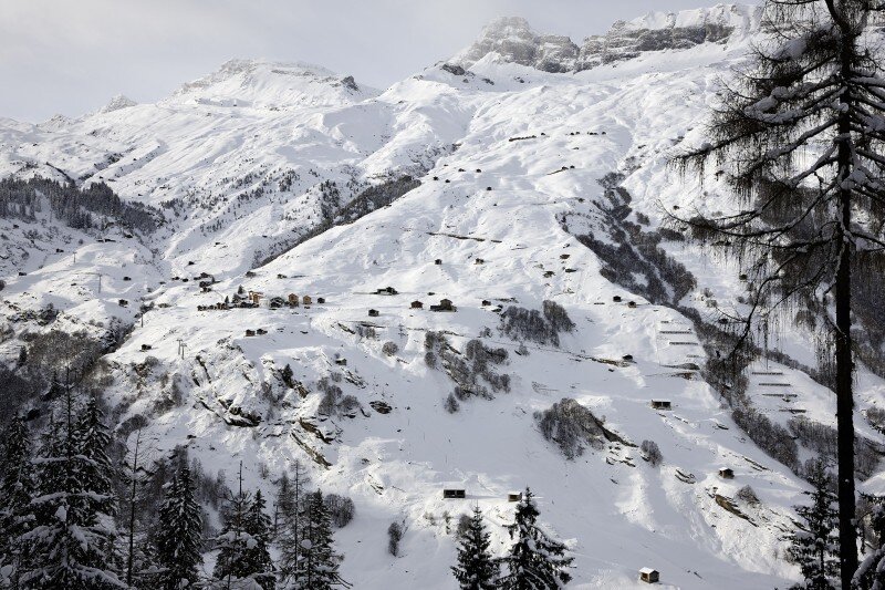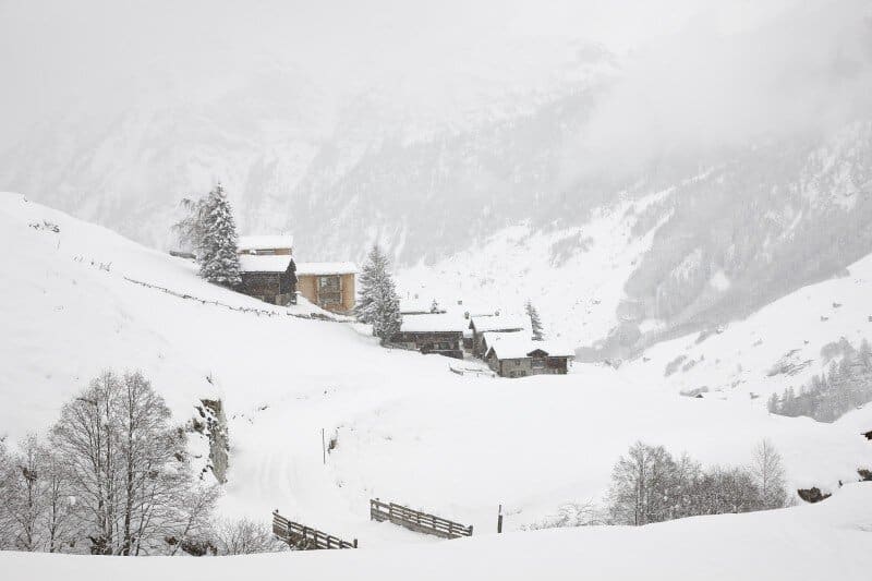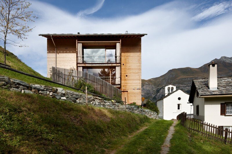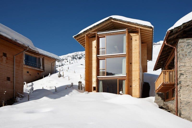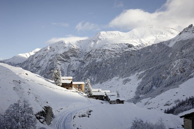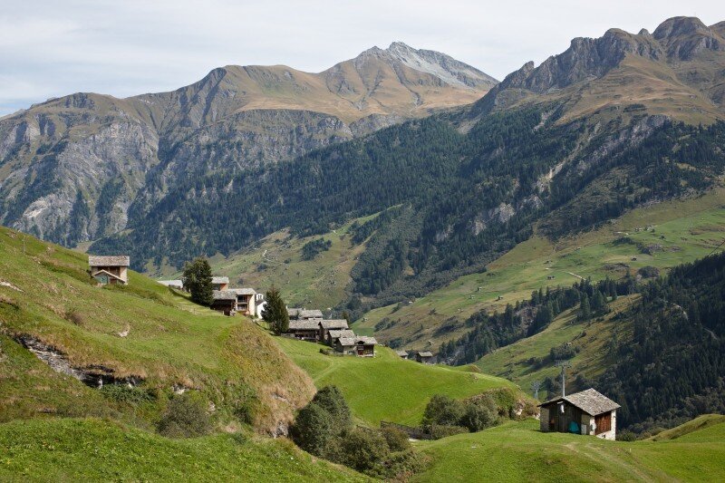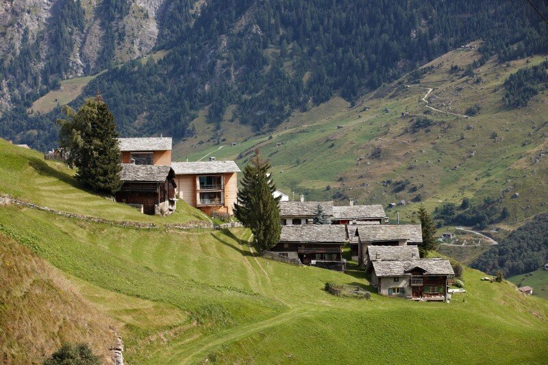 Leis is a hamlet with old black wooden buildings, a white chapel and a small restaurant located in the mountains above Vals in Graubünden, Switzerland. Here, at 1,500 meters, the internationally renowned architect and Pritzker Prize winner Peter Zumthor has built two wooden houses for himself and his wife Annalisa Zumthor: the Oberhus and the Unterhus. Since 2013 the ensemble is completed by a third wooden house, the Türmlihus. Unterhus and Türmlihus are rented as holiday homes.