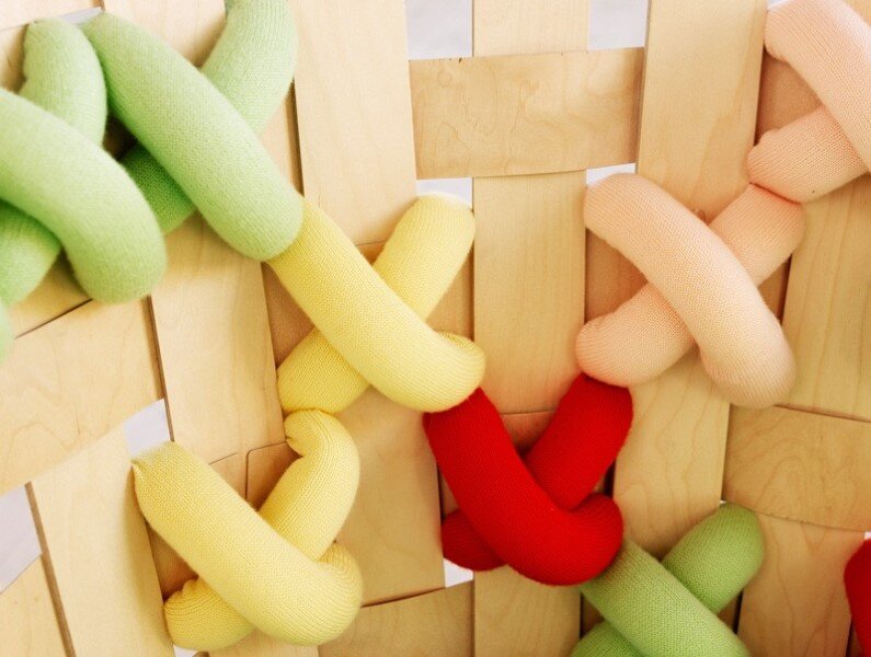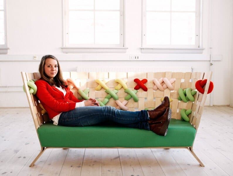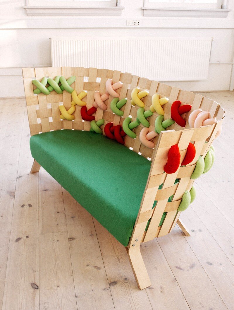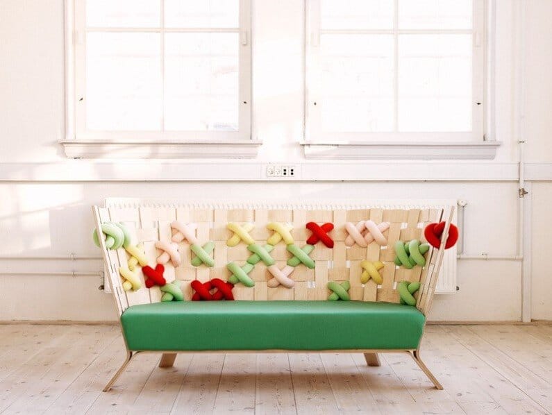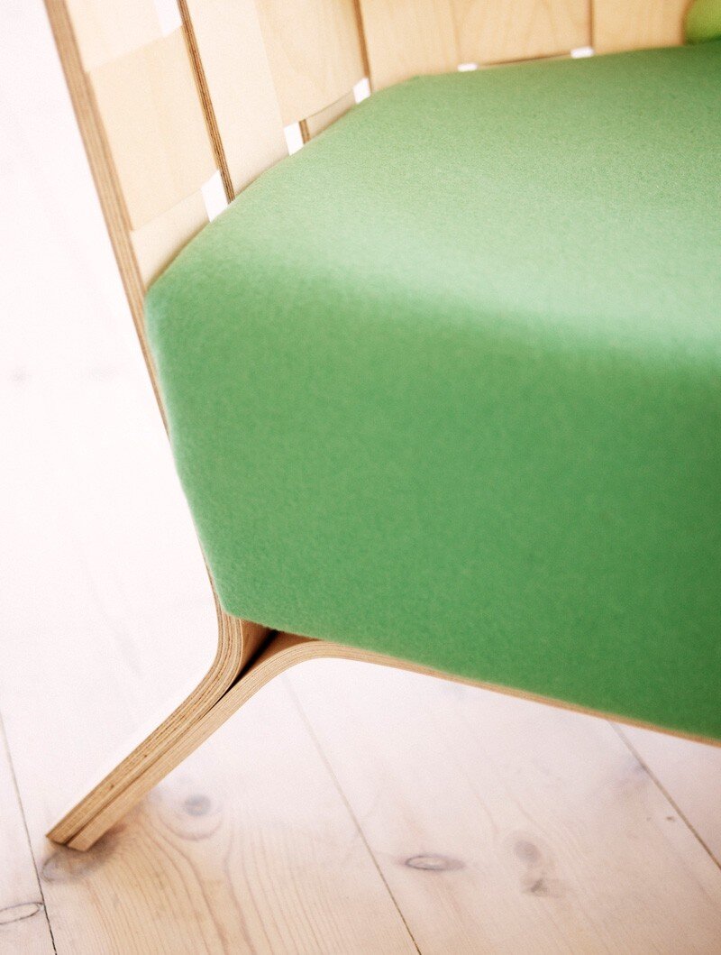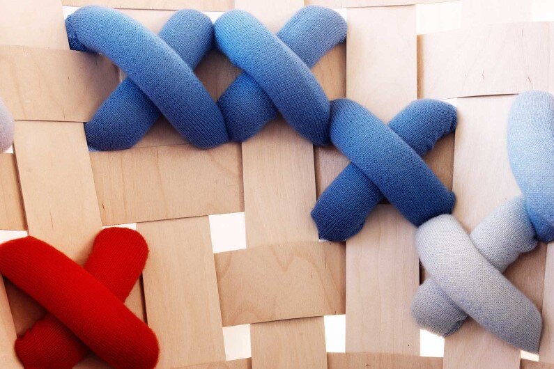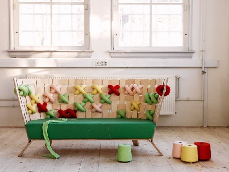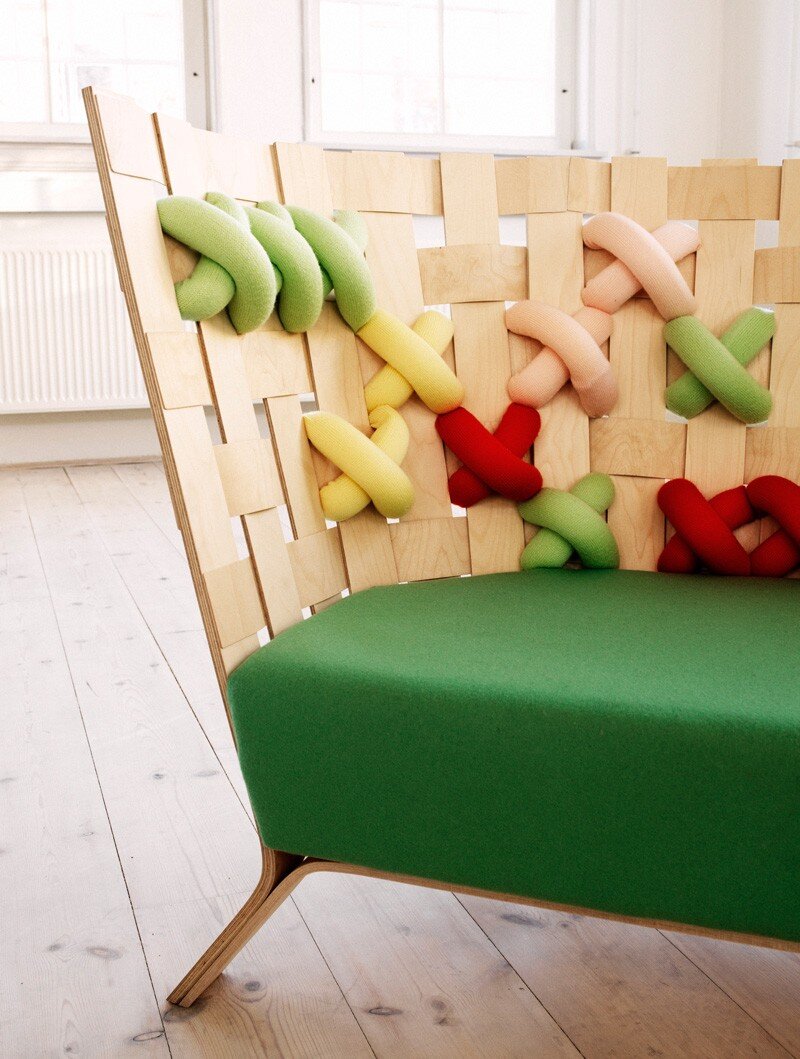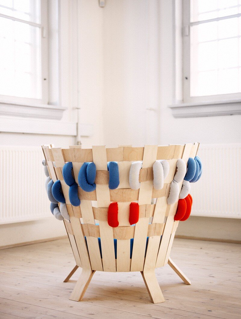 The designer’s presentation: The X-Me Collection is a furniture concept developed by the question “Why does Nordic furniture design lack ornaments?”. In the project, nordic furniture design were compared to the adorned Rococo furnitures. The goal was to find a balance between the two different aesthetics, to bring the best from both. The result was a oversized cross-stitch ornaments in wool, and a braided birch wood construction in a couch and a lounge chair collection. The balance between purity of style and decoration, where the inspiration was the reverse; the construction materials are Nordic and the shape is rococo. The ornament is inspired by rococo but the cross stitch stylish Scandinavian. And the craftsmanship brings them both together.