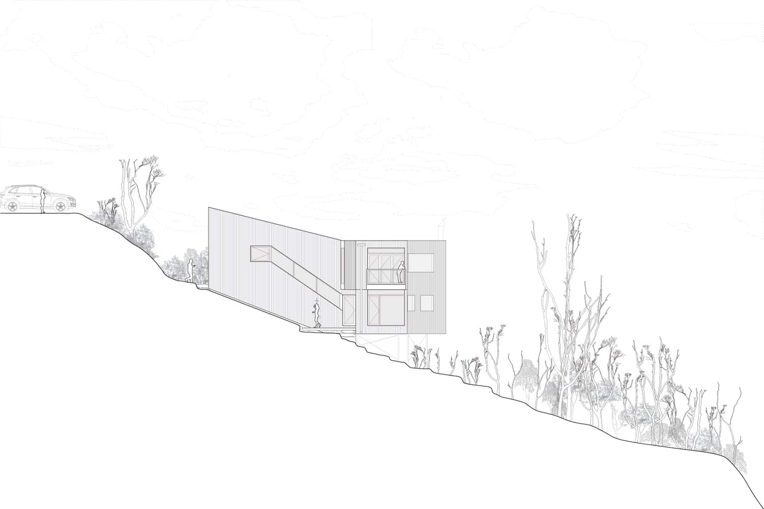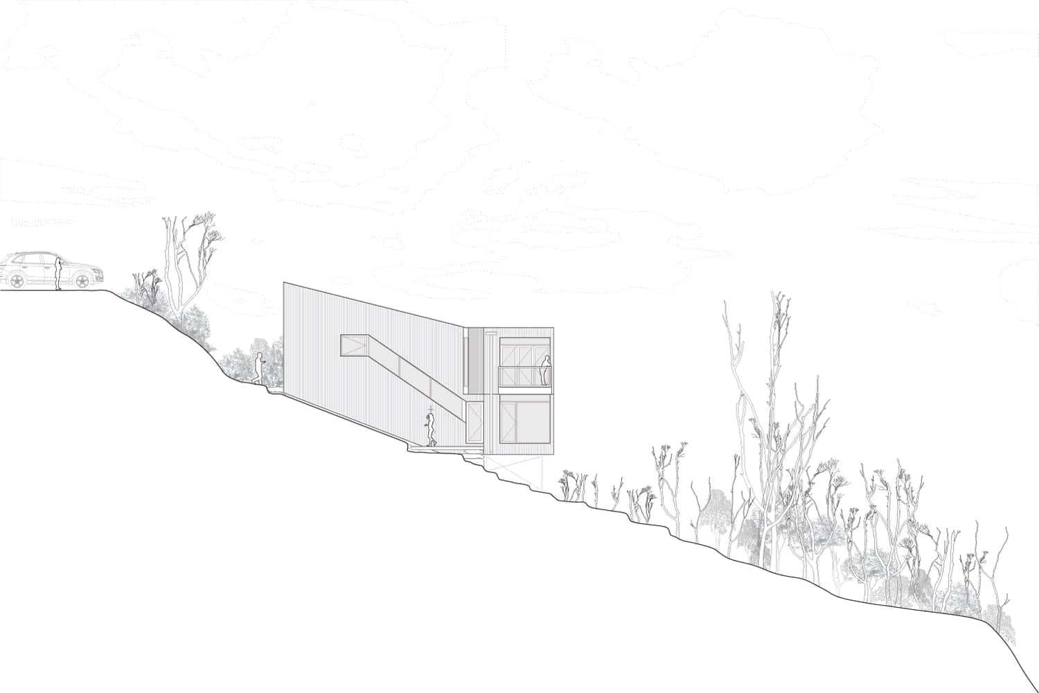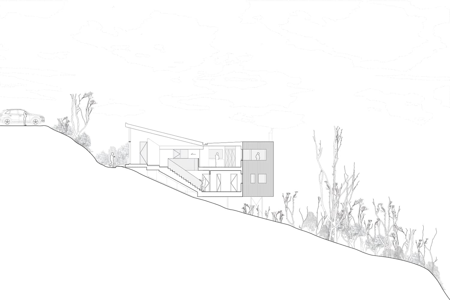 In response to the absence of a mains sewer system, the house incorporates a self-contained waste management system. The design also addresses the high bushfire risk by specifying materials and construction methods that meet stringent safety standards. The house’s orientation and its extensive use of glazing maximize passive solar heating and natural light, reducing the need for artificial heating and lighting and enhancing its sustainability credentials.