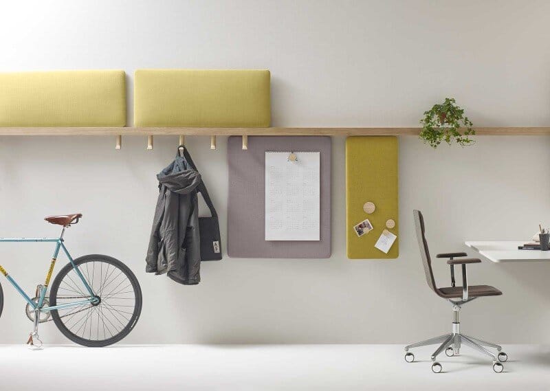 Zutik is a wall-mounted system made by the French studio Alki in order to be useful for storing and organizing personal belongings. The system relies on the existence of a massive oak beam around which various shelves and hooks for hanging can be arranged. Zutik can be reconfigured both in length and composition so it can adapt easily to spaces of different sizes and different backgrounds. It continually changes its shape and colours. The beam size can vary from a length of 1 metre up to 3 metres, and the main accessories are shelves, hooks, wooden pockets, acoustic panels and a mirror. These elements come in a delicate and trendy pastel colours palette, and they are easily combinable among each other.